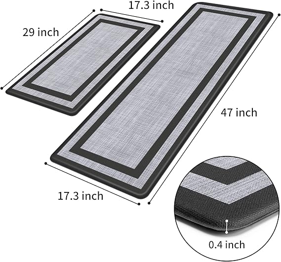 - 💕[Classic & Versatile] The 2-pack rugs for kitchen are measured as 17.3 x 47 inches and 17.3 x 29 inches in dimension.The pattern and color compliment kitchen nicely and make the foam mats perfect for home or commercial use.
